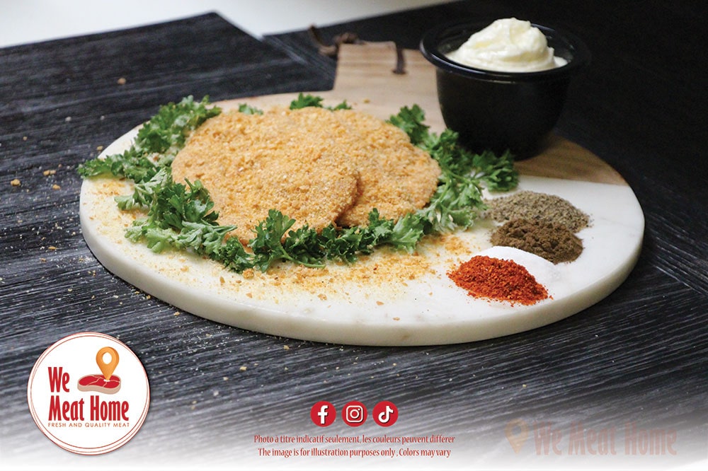 Fine chicken breast escalope, coated with oriental seasoning breadcrumbs, freshly prepared and frozen. It’s delicious! Prepare with love to be served in your dishes!