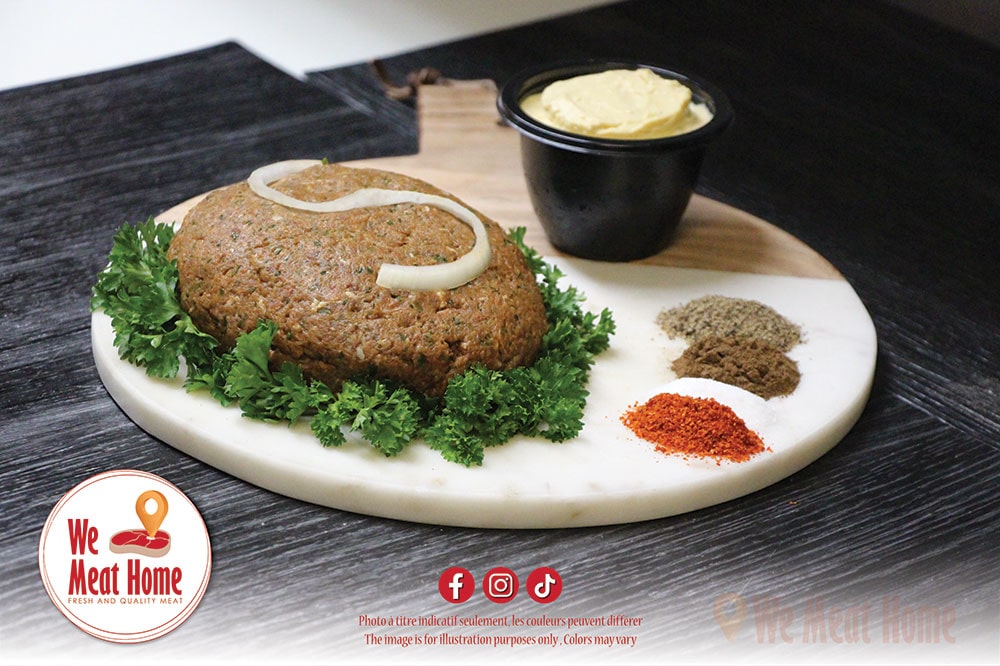 Un bon mix de viandes haché, assaisonnée avec nos délicieuse épices orientales spéciale (épice Kafta), sel, poivrons noirs, oignon et persil broyé! Préparer avec amour pour être servie dans vos plats!